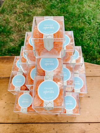 For favors, we kept things sweet and on-theme. Each guest took home a Sugarfina acrylic box of Italian spritz gummies (you can find them here)—a little nod to the citrus theme. And, of course, I had custom clementine-shaped sugar cookies made (here’s a great cookie cutter if you want to DIY!).